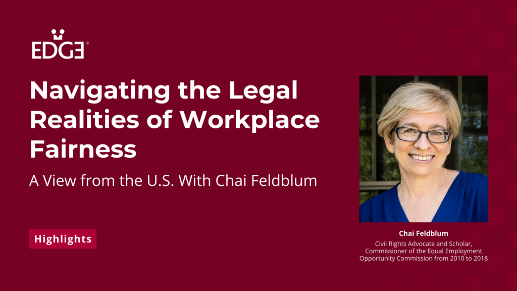 In this 30-minute EDGEtalks webinar, David Pritchett welcomed back Chai Feldblum, a long-time civil rights advocate, scholar, and former Commissioner of the Equal Employment Opportunity Commission in the U.S. Chai shared a clear update on what has and has not changed for employers working on diversity, fairness, and inclusion in the U.S.
